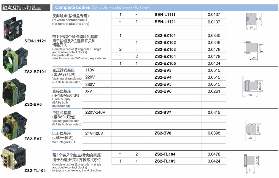 觸點(diǎn)及指示燈基座