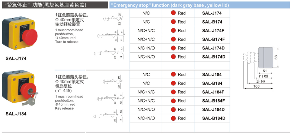 “緊急停止”功能(黑灰色基座黃色蓋)